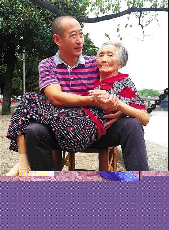 浙江男子张永康抱着80岁的母亲