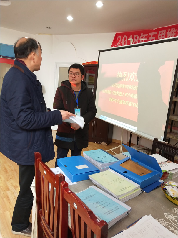 在2019年1月24日,我们终于迎来了省市标准化专家小组的评估验收。省市场监管局组织专家组一行八人,通过实地现场检查及查阅资料相结合方式,认真细致全面地对“嵌入社区式小规模多功能老年人照护服务标准化”进行了检查。
